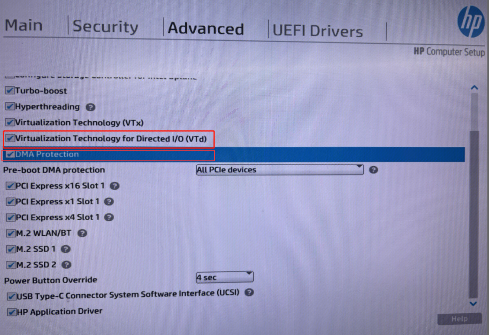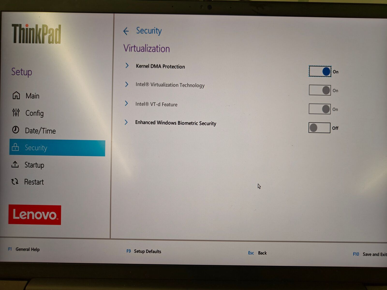 2. 进入Security->Virtualization,找到 Intel VT-d Feature 和 Kernel DMA Protection选项勾选
