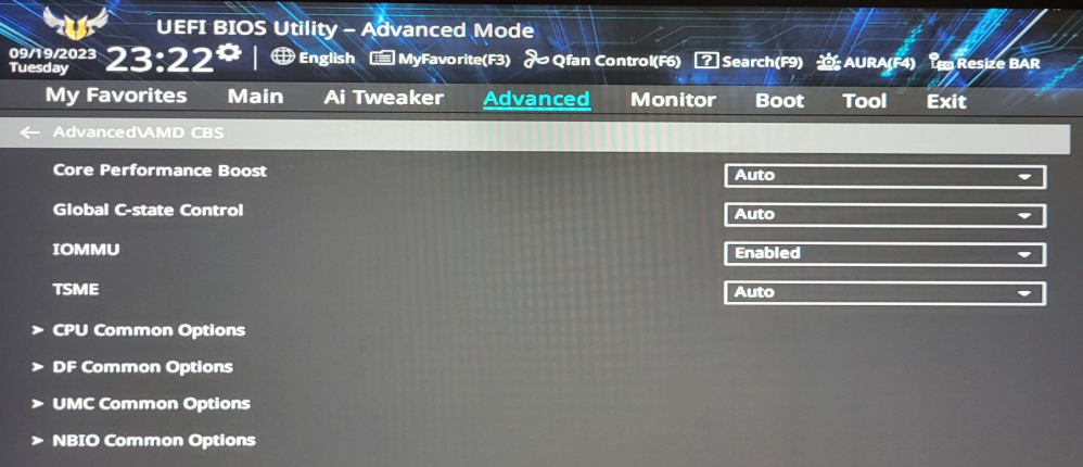 3. 在AMD CBS - NBIO Common Options项下,将IOMMU从Enabled/AUTO更改设定为Disabled。